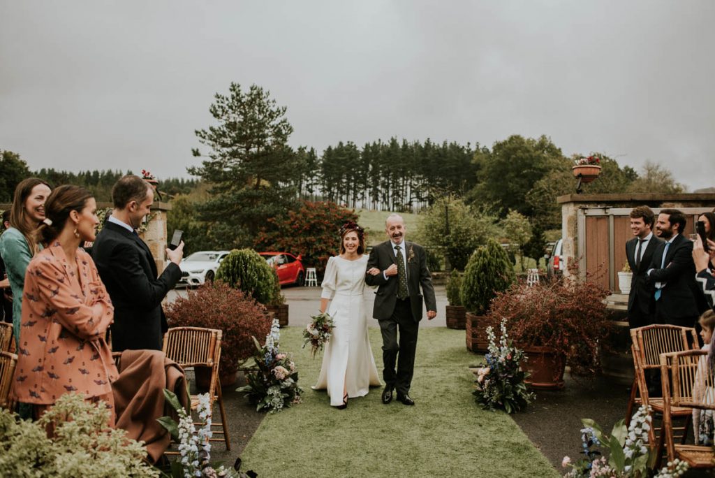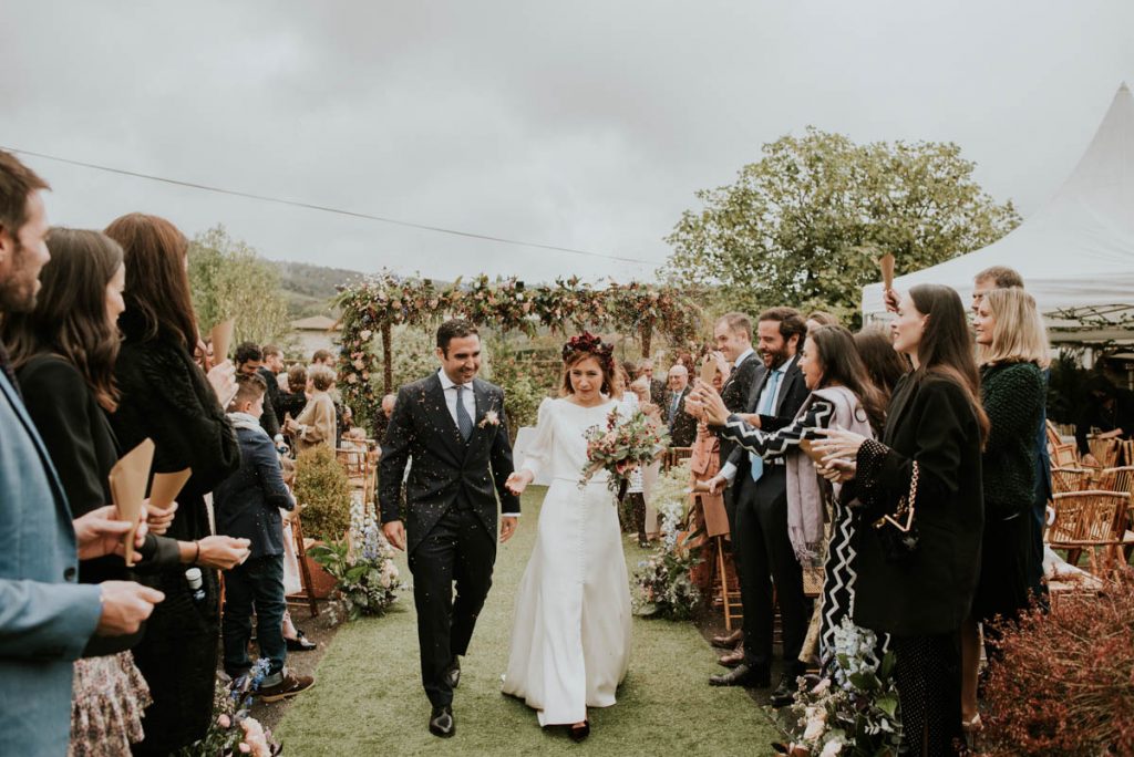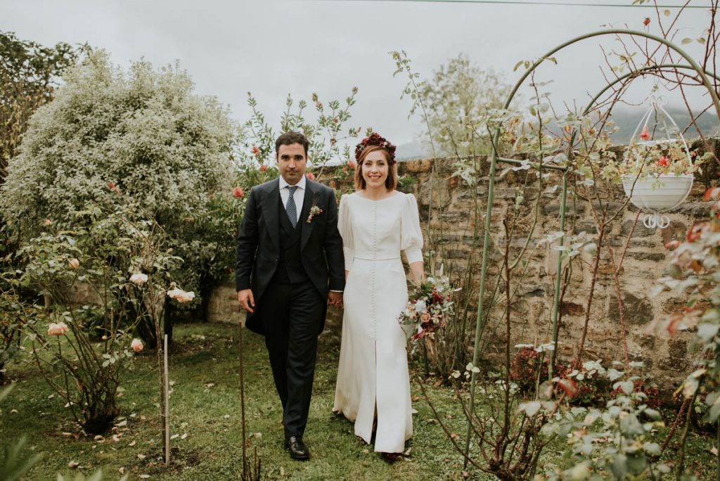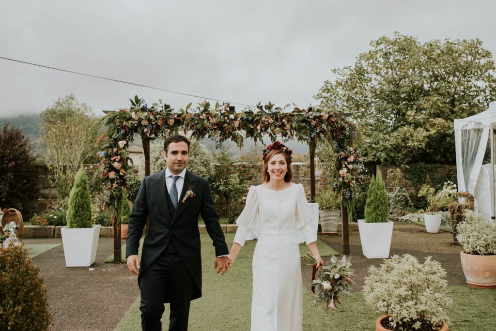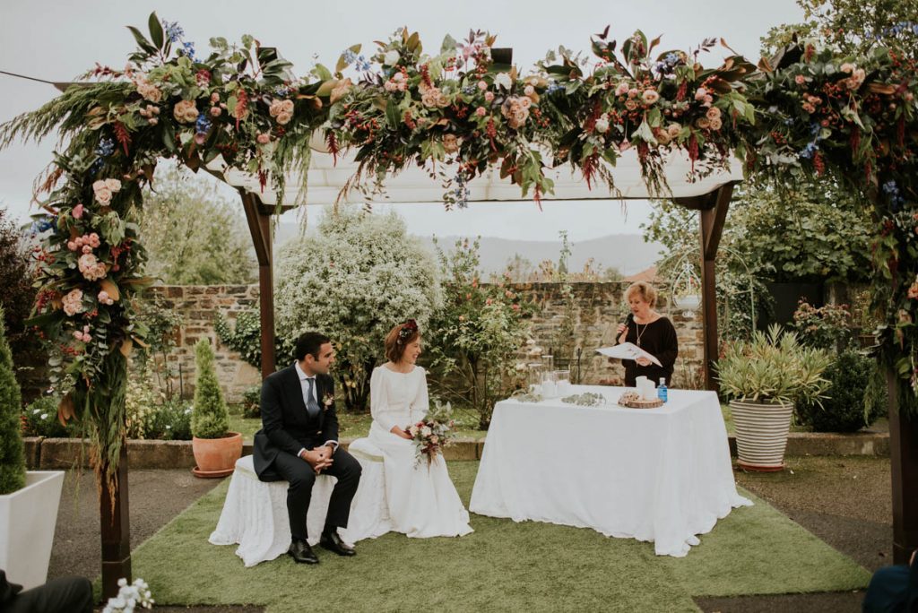 Celebraron una ceremonia civil que fue inolvidable. Para el gran momento, la novia escogió un vestido de Paredero Quirós de corte recto, con una abertura central en la falda y una larga botonadura en el cuerpo del traje. Un modelo muy elegante que combinó con unos zapatos de Customeus Bilbao, un tocado espectacular de color de Anita Ribbon y joyas de Urbieta Antique.