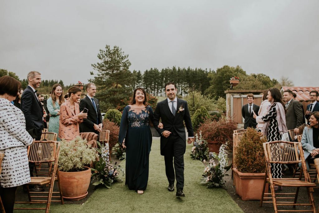 El novio, por su parte, se decantó por un traje de Lander Urquijo, un chaqué en color oscuro y una corbata azul. Le dio un toque sensacional al look con un prendido floral.